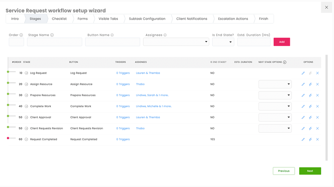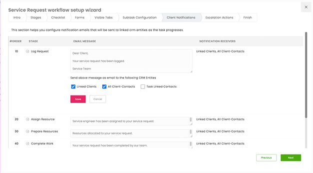 Set time limits for each stage. If work isn’t moving, the right people get notified automatically — task owners, managers, or admins. Two escalation levels let you catch issues early before they become client complaints.