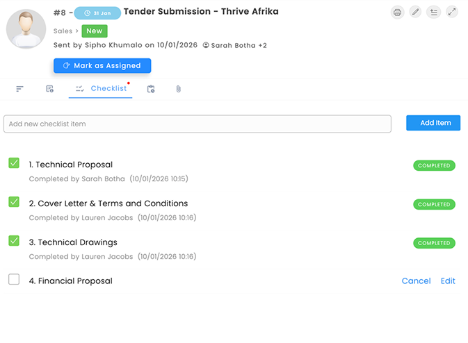 Complete a service request and a billing task is automatically created for finance. No manual handoffs. No “I forgot to tell them.” Work flows between teams without someone chasing it.