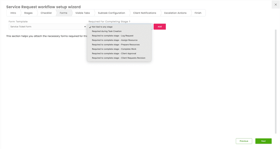 Link forms to any work flow stage