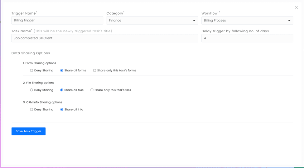 Link forms to any workflow stage to automatically collect the right information at the right time—keeping work moving without follow-ups.